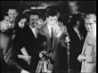 narrated / shots of golfers practicing / golfers check white board of names / night shot of crowd / Dean Martin and Jerry Lewis arrive and shake hands / Martin and Lewis will also participate in a celebrity tournament / Lewis carries a film can with THE CADDY and their names on it, next to Martin / guards escort them through the crowd / daytime shot of spectators fills screen / Dizzy Dean and Lew Worsham tee off / girls in front of crowd take photos / Perry Como tees off next / more shots of women and girls taking photos / Eddie Fisher tees off / Dean Martin tees off / shot of crowd / Jerry Lewis tees off and shades his eyes as he looks far into distance / guards and crowd move / Lewis putts a ball into the hole like a pool player, Martin sits on Lewis / crowd laughs and Lewis pops up right in front of camera / theater marquee and Martin and Lewis in front at movie premiere of THE CADDY / Martin and Lewis stand in front of the crowd at the premiere and eat popcorn / guards hold back the crowd / Martin and Lewis dump popcorn on Como/s and Fisher's heads / crowd waves / wide shot of theater / Back to the caddy tournament / A 16 year old caddy wins the tournament and receives trophies /