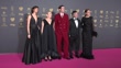 VALLADOLID, SPAIN - FEBRUARY 10: (L-R) Natasha Arizu, Luisa Gavasa, Enric Auquer, Albert Val and Maria Armengol attend the red carpet at the Goya Awards 2024 at Feria de Valladolid on February 10, 2024 in Valladolid, Spain. (Footage by David Benito/Getty Images)