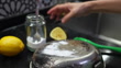 Natural Cleaning of Greasy Pan Using Lemon and Baking Sod - 4K stock video
