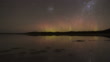 A time lapse of the Aurora Australis or Southern Lights with beams exploding into the night sky, all reflected in still water.