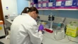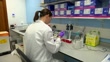 Rachel Dunn (England Netball Player) at work in hospital laboratory (during her day job as genetic technologist)