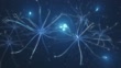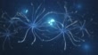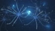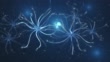 Neurons and Microglia - 3d rendered video of Neuron cell network on black background. Microglial cells are the most prominent immune cells of the central nervous system (CNS). Hologram view interconnected neurons cells with electrical pulses. Conceptual medical image. Glowing synapse. Healthcare concept.