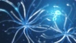 Neurons and Microglia - 3d rendered video of Neuron cell network on black background. Microglial cells are the most prominent immune cells of the central nervous system (CNS). Hologram view interconnected neurons cells with electrical pulses. Conceptual medical image. Glowing synapse. Healthcare concept.