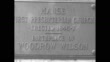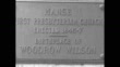 Title card: "Newmarket, VA - Will Rogers, famous comedian, screen star, Mayor of Beverly Hills and Uncle Sam's unofficial ambassador abroad, visits birthplace of Woodrow Wilson" / Rogers and US Army officer walk up to front gate of home, then they walk towards house / Rogers and officer stand in front of house looking at it, pan across to house / close shot of plaque on house, inscription on it saying "Manse First Presbyterian Church erected 1846-7, birthplace of Woodrow Wilson" / Note: exact month/day not known