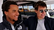 News item concerning Tom Cruise and his son Connor joining Team New Zealand crew on board America's Cup yacht on San Francisco harbor in 2013
