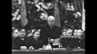 Nikita Khrushchev reads the resignation of Premier Georgy Malenkov in Russian as Malenkov sits next to him / Soviet defense minister Nikolai Bulganin and General Georgy Zhukov vote / soviet soldiers