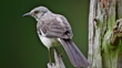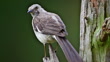 Northern Mockingbird on a dead Cedar tree in the woods of North Carolina.