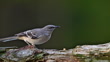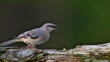 Northern Mockingbird finding food on a fallen log in the woods in Piedmont, North Carolina, USA.