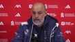 LIVERPOOL, ENGLAND - FEBRUARY 28: Nuno Espírito Santo, manager of West Ham, speaks about chances from Tomáš Souček and Jarrod Bowen after their Premier League match against Liverpool during a press conference at Anfield on February 28, 2026 in Liverpool, England. (Footage by Niche Sport Media via Getty Images)
