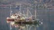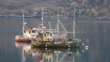 Old fishing boats in Loch Broom at Ullapool, Scotland, UK.