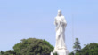 Old Havana, Havana, Cuba-July 1, 2014: Establishing shot of the white Carrara marble statue overlooking the entrance of the bay. The art piece was made by Cuban sculptor Jilma Madera. Old Havana is a Unesco World Heritage Site thus a famous place and major tourist attraction on the Caribbean island. Tourism is one of the main industries in the country.