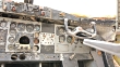 Damaged aircraft cockpit : dolly shot.