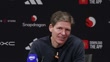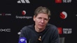 MANCHESTER, ENGLAND - MARCH 1: Oliver Glasner, manager of Crystal Palace, speaks on the penalty awarded to Manchester United and the red card shown to Maxence Lacroix following their Premier League match against Manchester United during a press conference at Old Trafford on March 1, 2026 in Manchester, England. (Footage by Niche Sport Media via Getty Images)