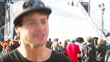 Olympic hopefuls demonstrate their skills; ENGLAND: London: Battersea:EXTSLOW MOTION Snowboarders demonstraing jumps and tricks on artificial snow slopePeople watching demonstration event with Battersea Power Station in backgroundSnowbarder down slope and performing jumpJamie Nicholls (Olympic hopeful) interview SOTSLOW MOTION Snowboarder performing trickBilly Morgan (Olympic hopeful) interview SOTPeople attending the event with face painted for halloweenMen wearing fur hatsMan wearing bobble hatMen wearing hats