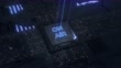On Air.Digital futuristic text animation.Advanced Technology Concept Visualization: Circuit Board CPU Processor Microchip Starting Artificial Intelligence Digitalization of Neural Networking and Cloud Computing data. - 4K stock video