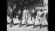 On Pennsylvania Ave, a crowd of people line the streets to watch U.S. President Woodrow Wilson lead the Red Cross Parade. Followed by the President and First Lady Edith Wilson who are seen at Griffith Stadium. Wilson autographs a baseball. Later, a monkey waves a Red Cross Flag, Washington, D.C., U.S.A., 1917.