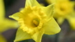 Close up of one bright yellow daffodil swaying gently in the wind