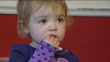 One year old girl has ground breaking surgery using calf's jugular vein; Megan Mills drawing on board and eating biscuit