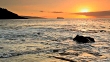 Shoreline sunset at Oneuli beach, in Maui, Hawaii. The islands of Molokini, and Kahoolawe are in the distance.