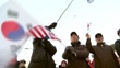 PYEONGCHANG 2018 Opening ceremony / North - South Korea diplomacy; South Korea: Gangneung:EXT / DAYVarious shots of anti-North Korea demonstrators (protesting about North Korea's participation in 2018 Winter Olympics) - protesters wave South Korea and US flags and posters showing defaced images of North Korean leader Kim Jong-Un/Protesters stamp on poster image of Kim Jong-Un/Protesters singing songs and waving US and South Korean flags/Vox pops /Reporter to camera/Various of protesters singing song and waving US and South Korean flags/INTBan Ki-moon (Former UN Secretary-General) interview SOT- there are mixed feelings about North Korean smile diplomacy or charm diplomacy/ the moment of truth will come whether North Korea is engaging in real, genuine dialogue/Various of 'team Korea' Paralympic ice hockey players at training session with coach Hwangbo Young looking on from side of rink/Hwangbo Young (North Korean defector / ice hockey trainer) interview (reporter translation) SOT