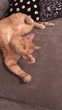 Orange cat unusual superman sleep position couch
