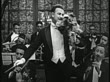 B/W 1919 orchestra conductor smelling bouquet of flowers while conducting + sneezing / short - stock video