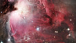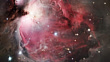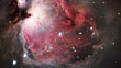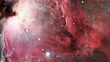 The Orion nebula can be seen with the naked eye as a fuzzy patch in the constellation Orion. This part of it comprises two nebulae: M42 (pink, upper centre) and M43, the small round nebula immediately above M42. These nebulae glow pink as the hydrogen they contain is ionised by radiation from hot young stars that recently formed inside them. In the case of M42, the stars that light it up are a group of four known as the Trapezium, in the brightest part of the nebula. The nebulae lie around 1500 light years from Earth