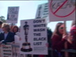 People protesting against award of honorary Oscar for director Elia Kazan (15 secs)