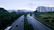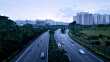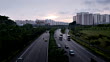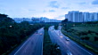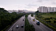 Time Lapse of the morning traffic at Tampines Express Way from high angle view, with Punggol housing estate in background, Singapore.