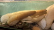 Pacific geoduck in glass case, fresh Pacific geoduck for cooking