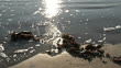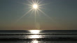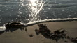 Pan down to seaweed, back up to waves and the sun just before sunset - HD stock video