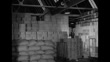 Pan interior warehouse shots of men stacking large piles of boxes; pan to hundreds more parcels and stacked burlap sacks / VS boxes of 'Weetabix' / CU Weetabix boxes / a wall of boxes with two men with a ladder stacking more / A tracking shot of 'Quick Quaker Oats' / 'Prunes packed by Rosenberg Bros & Co., California, USA' / 'Evaporated milk, Pet Milk Company, St Louis, MO, USA' / stacked crates with stuffed sacks behind / A room filled with machinery with stacks of food beyond; 'Tate & Lyle, Ltd, Granulated Sugar, British Refined' / Men hoisting heavy burlap sacks / Note: exact year not known; documentation incomplete
