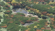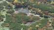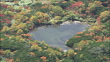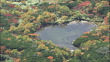 Pan left over Nanatsu-numa cirque surrounded by autumnal leaves, Hidaka Mountain Range, Hokkaido