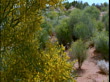 Pan right over flowering wattle in outback after desert rains, Sturt National Park, New South Wales, Australia (Core Number: NBRY279H)
