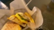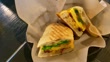 This clip features an egg and bacon panini sandwich at a cafe.