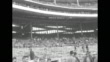 Card: "Paramount News issue no 68" / Title "Welcome! New home of the Brave(s)" superimposed over crowd waiting outside Union Depot / WS downtown Milwaukee / line of women wearing headdresses and sweaters with letter "B" on them hold letters that spell out "Welcome" / woman holding sign that says "Me Too" and holding small girl, both wearing headdresses / train carrying Braves team pulling into station / two men rolling out red carpet on train platform / Braves manager Charlie Grimm getting off train and waving as he does so / crowd on platform waving / team walking through crowd inside station / crowd outside station / man selling Braves pennants / boy in headdress waving pennant / sign on pole saying "Welcome Milwaukee Braves" / players riding in motorcade down street, crowd watching / Grimm and team executives riding in open car with others / shot from moving vehicle of crowd / shot from moving vehicle of motorcade driving down street in front of it / player riding in open car with women / motorcade driving down street / shot of exterior of Milwaukee County Stadium / shot of field and empty stands inside stadium / in locker room equipment manager opens trunk and takes out Braves jacket / players in locker room / pitcher Warren Spahn putting on uniform shirt / Spahn posing for photo opportunity pointing at word "Braves" on his shirt / Grimm throwing away his hat with "B" on it and putting on hat with "M" on it / pan across players sitting in dugout posing for photo opportunity/ players come running out of dugout / players practicing on field / player Andy Pafko swinging bat / Grimm on field looking up at stands, pan across to people in stands / Note: exact day not known