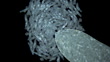 Light micrograph of larvae of a Podocotyle sp. parasitic worm hatching from their sea snail host (bottom right). These are the motile cercariae larvae that developed inside sporocysts inside the snail. The final host of the worm is a fish. Specimen from the White Sea, Russia