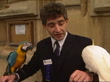 Parrot pet trade; Parrot pet trade; ITN ENGLAND: London: Westminster: CMS Tony Juniper, International Council for Bird Preservation, being handed a white cockatoo & St Lucia parrotCMS Tony Juniper, ICBP, intvwd - very worried about the continued capturing of wild rare birds/ people who want pets should try to get them from captive stocks SOFTCMS St Lucia parrot heldTX:30.10.89/NAT