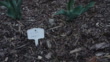 Flowering parrot tulips. Mulched back yard garden. Springtime. Month of April.