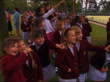 General Election: Party leaders partners; ITN ENGLAND: London: EXT TMS Group of schoolgirls shouting excitedly as jumping up and down