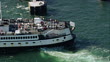 AERIAL Passenger ferry, with passengers on deck, approaching the dock / Oak Bluffs, Massachusetts, United States - HD stock video