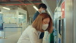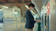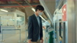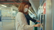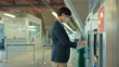 Passenger train buying ticket on ticket machine at railroad station. - 4K stock video