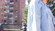 MILAN, ITALY - FEBRUARY 23: (SLOW-MO) Patricia Manfield (Heir) poses ahead of the Diesel fashion show wearing a long denim shirt during the Milan Fashion Week Fall/Winter 2022/2023 on February 23, 2022 in Milan, Italy. (Footage by Valentina Frugiuele/Getty Images)