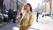 MILAN, ITALY - FEBRUARY 23: (SLOW-MO) Patricia Manfield (Heir) poses ahead of the Fendi fashion show wearing a golden dress and skirt during the Milan Fashion Week Fall/Winter 2022/2023 on February 23, 2022 in Milan, Italy. (Footage by Valentina Frugiuele/Getty Images)