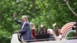 LONDON, ENGLAND - JUNE 5: Patrick Mower and Craig Charles ride a bus along The Mall during the Platinum Pageant on June 5, 2022 in London, England. The Platinum Jubilee of Elizabeth II is being celebrated from June 2 to June 5, 2022, in the UK and Commonwealth to mark the 70th anniversary of the accession of Queen Elizabeth II on 6 February 1952. (Footage by Klára Šimonová/Getty Images)
