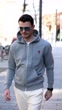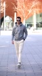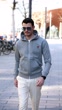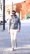 DUSSELDORF, GERMANY - MARCH 31: Paul-Henry Duval, Fashion blogger is seen wearing Maurizio Baldassari pants in creme, Ami Paris sweatshirt jacket in gray, Porsche design sunglasses, Monaco duck shoes in light grey on March 31, 2021 in Dusseldorf, Germany.