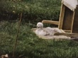 Peaceful observation of various birds in a rural or semi-rural setting, possibly a reserve or park. The video features a group of ducks resting near a wire fence, a lone duckling or swan cygnet by a wooden shelter, a white swan lying on the grass, and a black and white bird, possibly an oystercatcher, feeding through a fence.