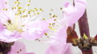 Peach Flower blooming at white background in a zoom out horisontal time lapse movie. Vertical camera movement. Prunus persica growing in time-lapse. Peach trees typically bloom in spring, stone fruit flower blosom. The specific name persica refers to its widespread cultivation in Persia (modern-day Iran), from where it was transplanted to Europe. It belongs to the genus Prunus which includes the cherry, apricot, almond and plum, in the rose family. The peach (Prunus persica) is a deciduous tree first domesticated and cultivated in Zhejiang province of Eastern China. It bears edible juicy fruits with various characteristics, most called peaches and others (the glossy-skinned, non-fuzzy varieties), nectarines.