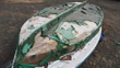 Peeling paint on an old boat in Playa Quemada on Lanzarote, Canary Islands.