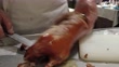 Peking duck is a dish from Beijing (Peking) that has been prepared since the imperial era. The meat is characterized by its thin, crisp skin, with authentic versions of the dish serving mostly the skin and little meat, sliced ​​in front of the diners by the cook. Ducks bred specially for the dish are slaughtered after 65 days and seasoned before being roasted in a closed or hung oven. The meat is often eaten with spring onion, cucumber and sweet bean sauce with pancakes rolled around the fillings . Sometimes pickled radish is also inside, and other sauces (like hoisin sauce) can be used.